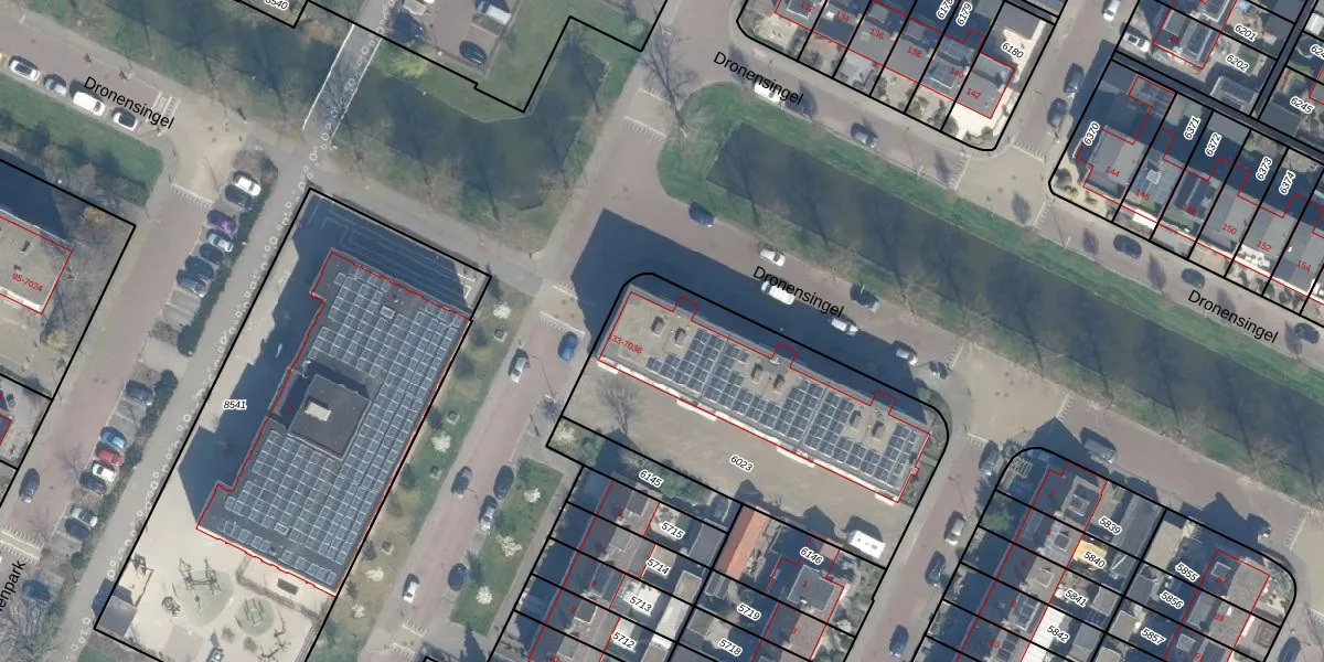 Het perceel waarop Dronensingel 7025 staat heeft een oppervlakte van 1371 m². Dit is een zeer groot perceel. De perceeloppervlakte wordt geregistreerd door het Kadaster. Gedetailleerde informatie over de maten van dit perceel kunt u vinden in het rapport Kadastrale kaart met maatvoering van Dronensingel 7025.
