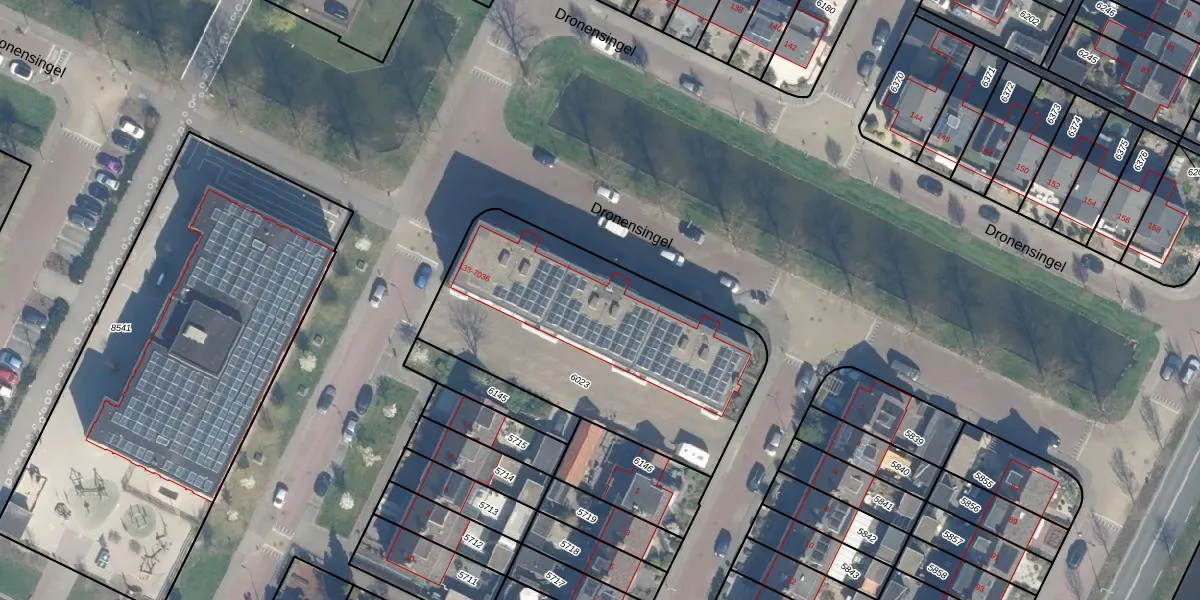 Het perceel waarop Dronensingel 7030 staat heeft een oppervlakte van 1371 m². Dit is een zeer groot perceel. De perceeloppervlakte wordt geregistreerd door het Kadaster. Gedetailleerde informatie over de maten van dit perceel kunt u vinden in het rapport Kadastrale kaart met maatvoering van Dronensingel 7030.