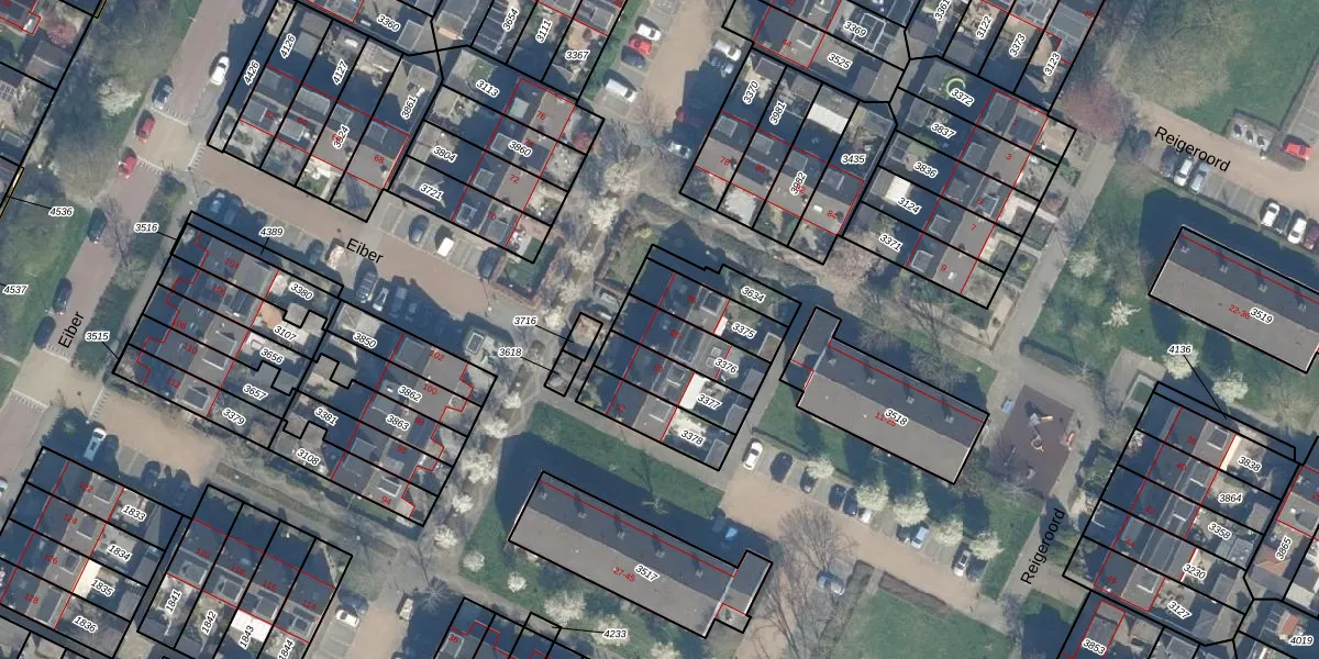 Gebruik de zoekbalk of klik op een perceel voor informatie over de adressen binnen dit perceel.