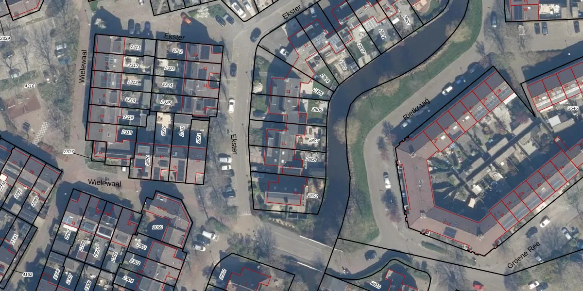 Gebruik de zoekbalk of klik op een perceel voor informatie over de adressen binnen dit perceel.