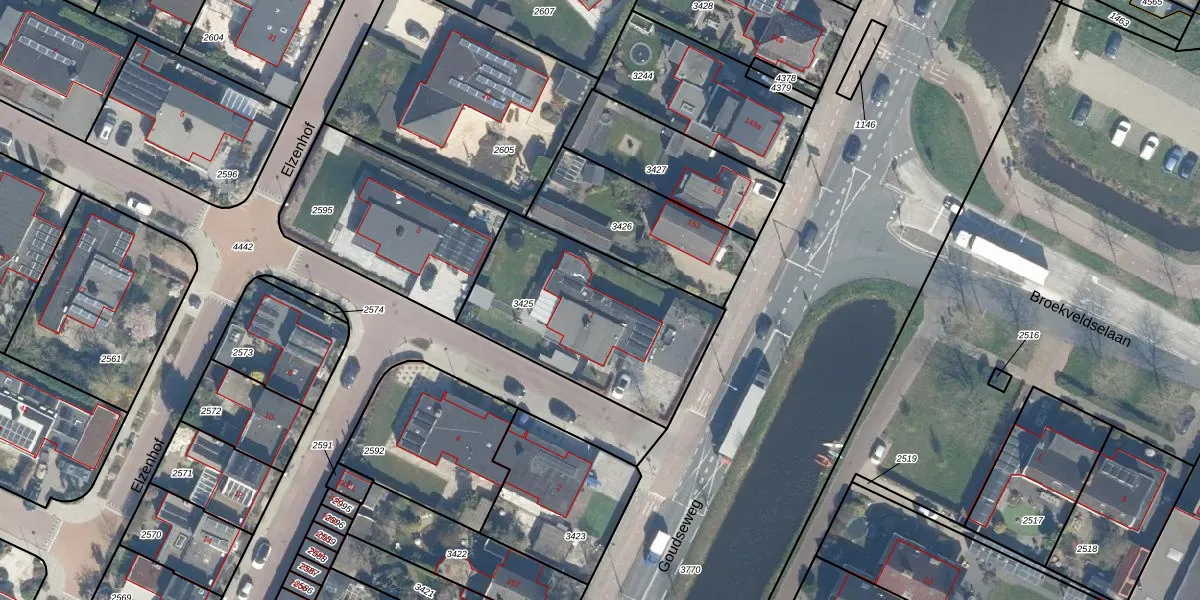 Elzenhof 1 is gelegen op kadastraal perceel BDG00F3425. Deze kadastrale aanduiding is uniek en wordt gebruikt door het Kadaster om eigendomsrechten en andere zakelijke rechten vast te leggen. Het perceel maakt onderdeel uit van de kadastrale gemeente Bodegraven.