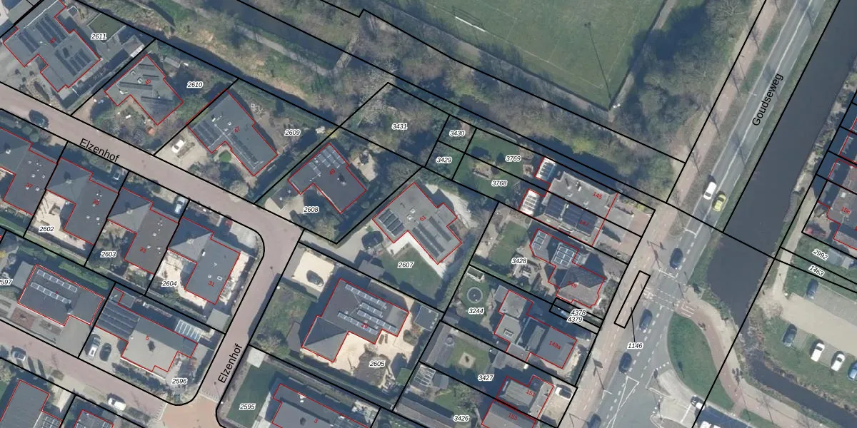 Het adres ligt op het perceel BDG00-F-2607, dat zich in de kadastrale gemeente Bodegraven bevindt. Het perceel is kleiner dan gemiddeld in Bodegraven. Het perceel is 755 m² groot, terwijl het gemiddelde ligt op 3221,78 m². Het grootste perceel in de kadastrale gemeente is 36,3 ha. Het kleinste perceel heeft een oppervlakte van 0 m². Op het perceel bevinden zich geen andere adressen. De huidige grenzen van het perceel zijn digitaal in de Basisregistratie Kadaster (BRK) geregistreerd op 10-11-1999.