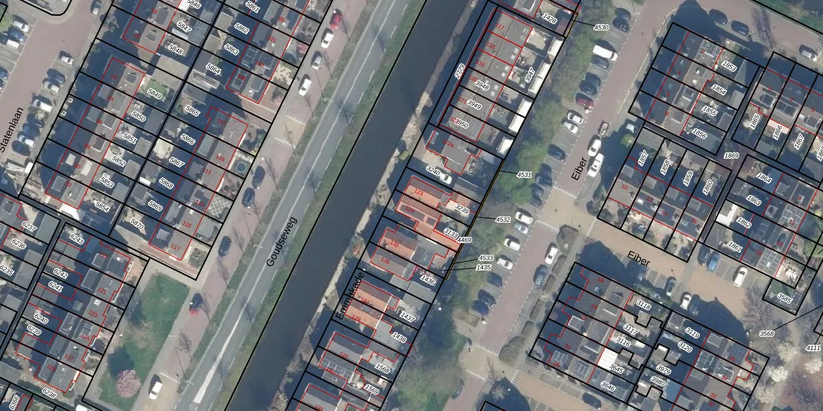 Gebruik de zoekbalk of klik op een perceel voor informatie over de adressen binnen dit perceel.
