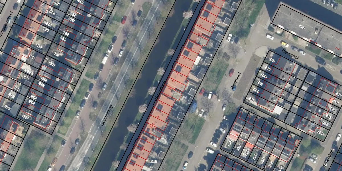 Het perceel waarop Emmakade 55 staat heeft een oppervlakte van 3062 m². Dit is een zeer groot perceel. De perceeloppervlakte wordt geregistreerd door het Kadaster. Gedetailleerde informatie over de maten van dit perceel kunt u vinden in het rapport Kadastrale kaart met maatvoering van Emmakade 55.