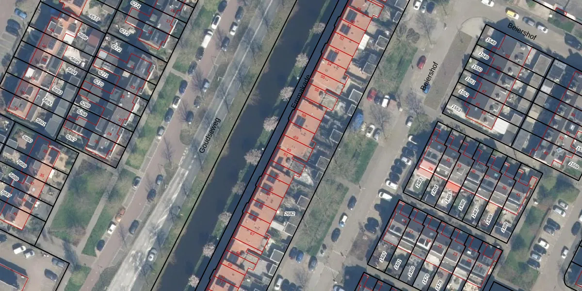 Het perceel waarop Emmakade 60 staat heeft een oppervlakte van 3062 m². Dit is een zeer groot perceel. De perceeloppervlakte wordt geregistreerd door het Kadaster. Gedetailleerde informatie over de maten van dit perceel kunt u vinden in het rapport Kadastrale kaart met maatvoering van Emmakade 60.