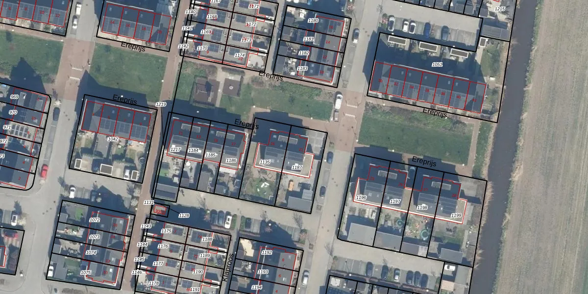 Het perceel waarop Ereprijs 21 staat heeft een oppervlakte van 353 m². Dit is een groot perceel. De perceeloppervlakte wordt geregistreerd door het Kadaster. Gedetailleerde informatie over de maten van dit perceel kunt u vinden in het rapport Kadastrale kaart met maatvoering van Ereprijs 21.