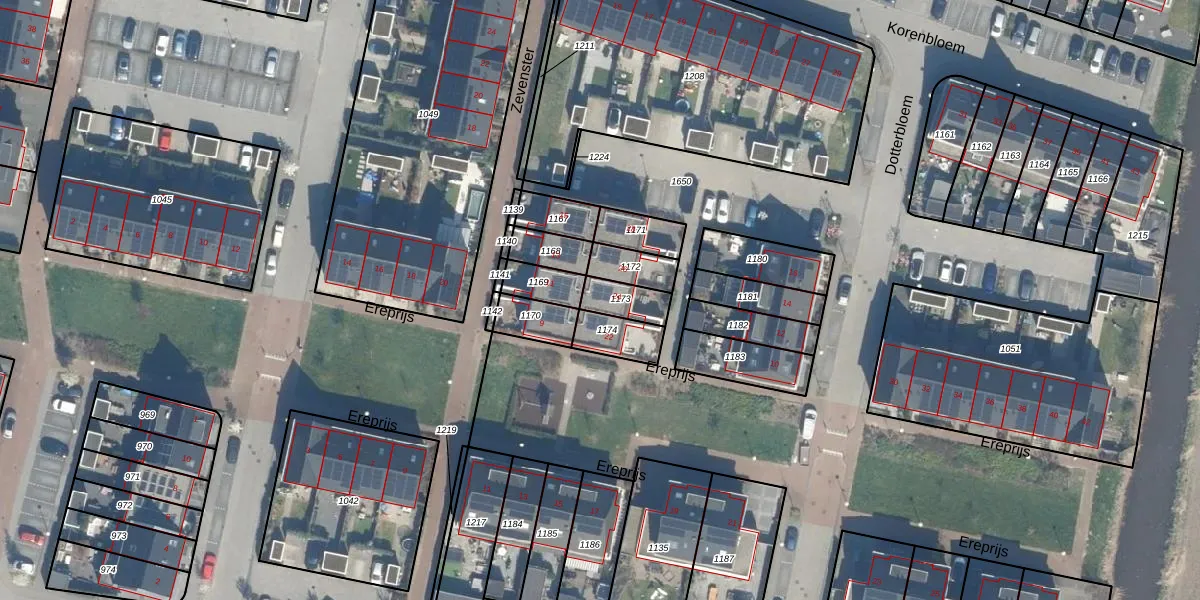 Het perceel waarop Ereprijs 24 staat heeft een oppervlakte van 83 m². Dit is een klein perceel. De perceeloppervlakte wordt geregistreerd door het Kadaster. Gedetailleerde informatie over de maten van dit perceel kunt u vinden in het rapport Kadastrale kaart met maatvoering van Ereprijs 24.