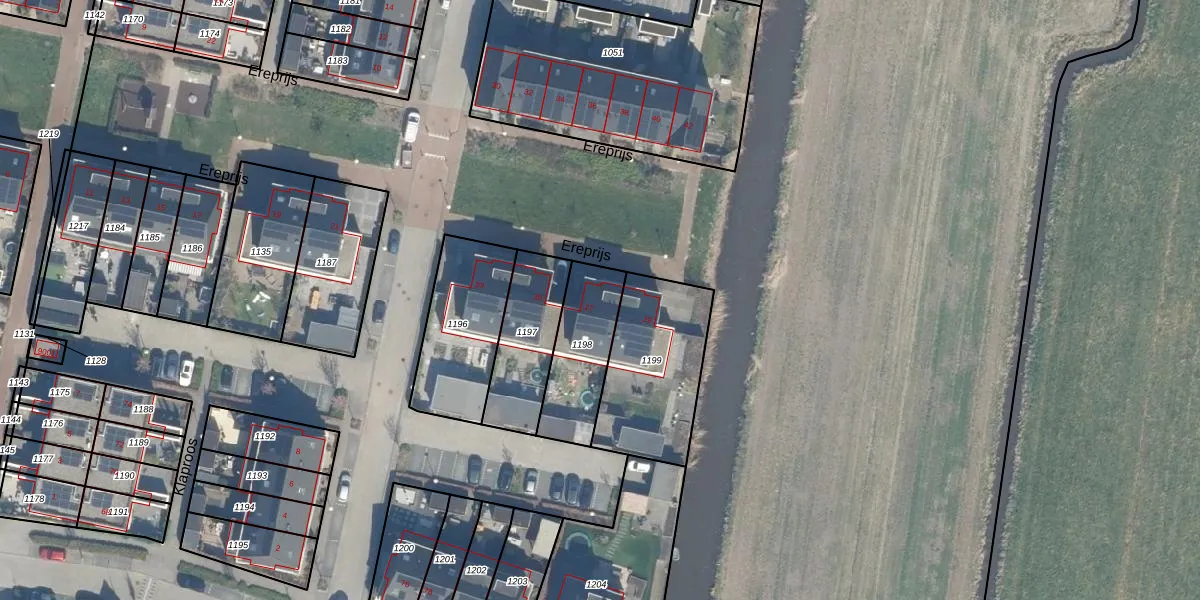 Het perceel waarop Ereprijs 27 staat heeft een oppervlakte van 277 m². Dit is een middelgroot perceel. De perceeloppervlakte wordt geregistreerd door het Kadaster. Gedetailleerde informatie over de maten van dit perceel kunt u vinden in het rapport Kadastrale kaart met maatvoering van Ereprijs 27.