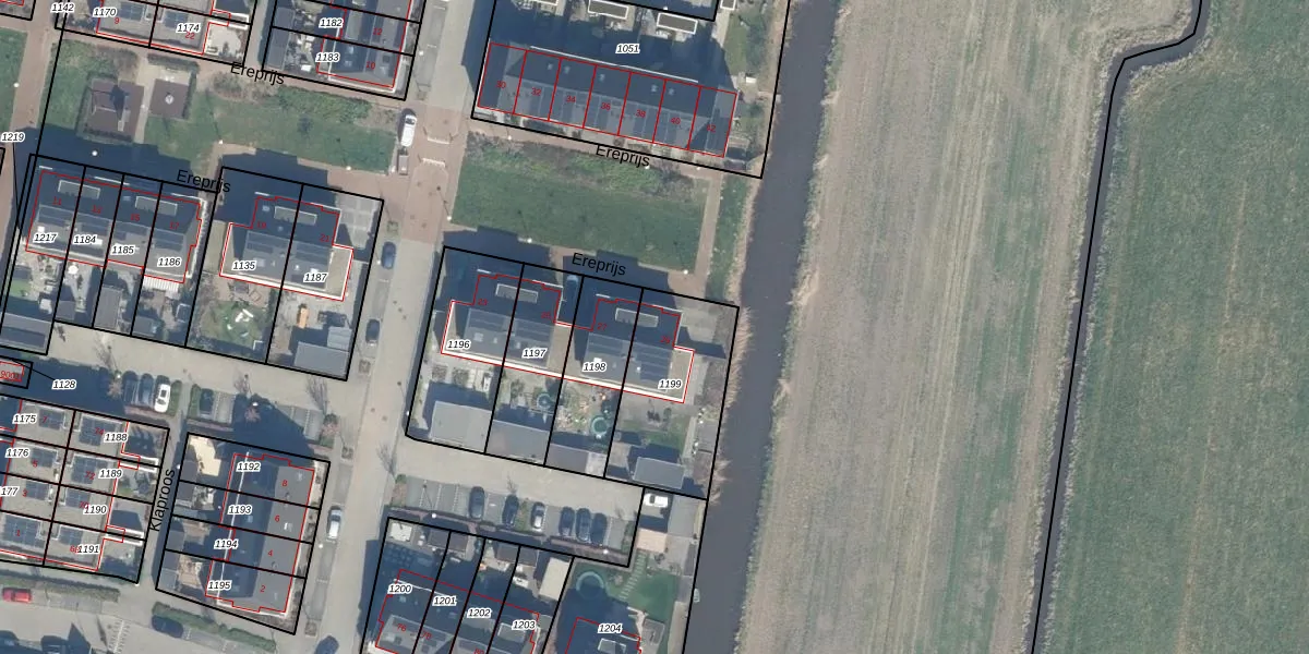 Ereprijs 29 is gelegen op kadastraal perceel BDG00H1199. Deze kadastrale aanduiding is uniek en wordt gebruikt door het Kadaster om eigendomsrechten en andere zakelijke rechten vast te leggen. Het perceel maakt onderdeel uit van de kadastrale gemeente Bodegraven.