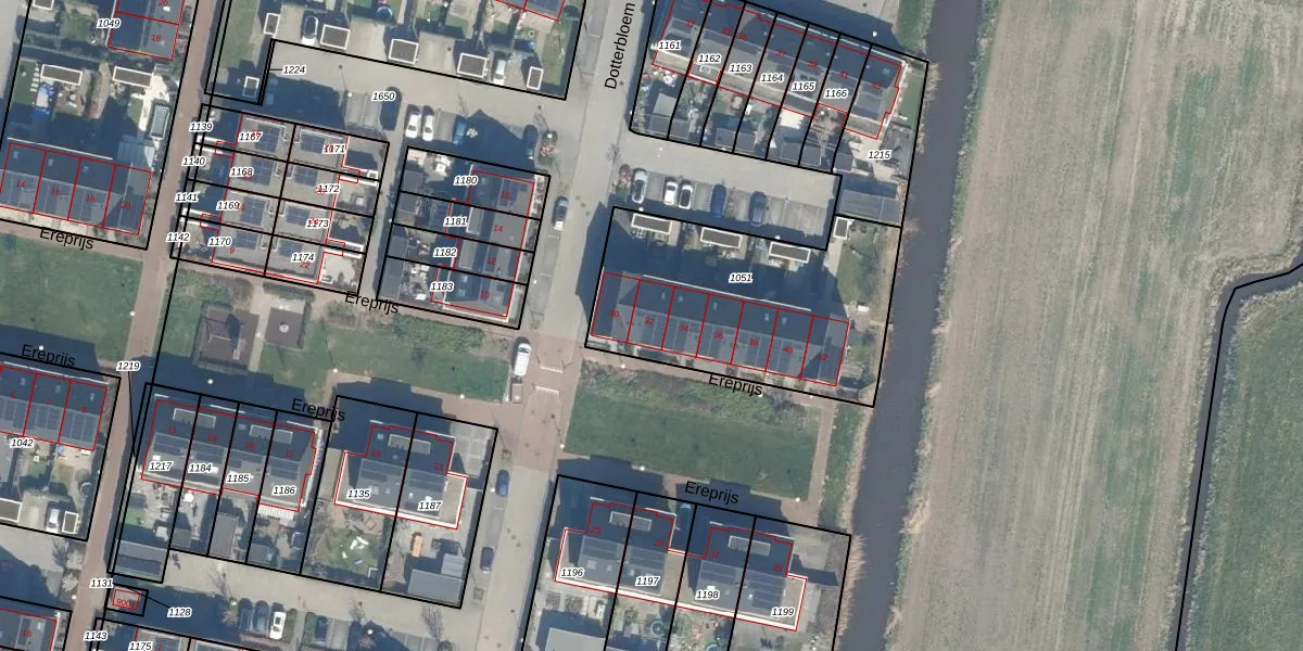 Het perceel waarop Ereprijs 32 staat heeft een oppervlakte van 1050 m². Dit is een zeer groot perceel. De perceeloppervlakte wordt geregistreerd door het Kadaster. Gedetailleerde informatie over de maten van dit perceel kunt u vinden in het rapport Kadastrale kaart met maatvoering van Ereprijs 32.