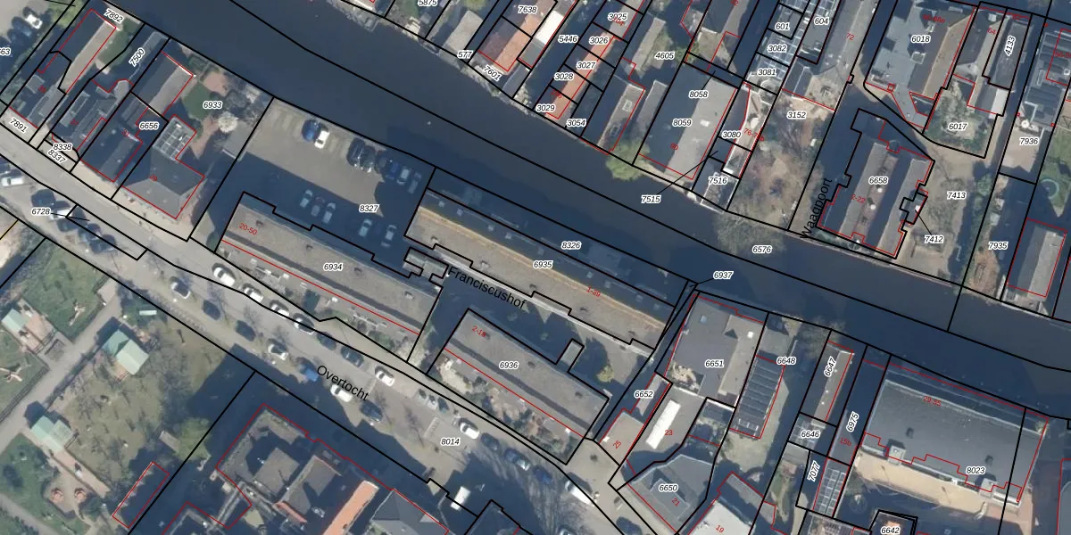 Het perceel waarop Franciscushof 15 staat heeft een oppervlakte van 710 m². Dit is een groot perceel. De perceeloppervlakte wordt geregistreerd door het Kadaster. Gedetailleerde informatie over de maten van dit perceel kunt u vinden in het rapport Kadastrale kaart met maatvoering van Franciscushof 15.