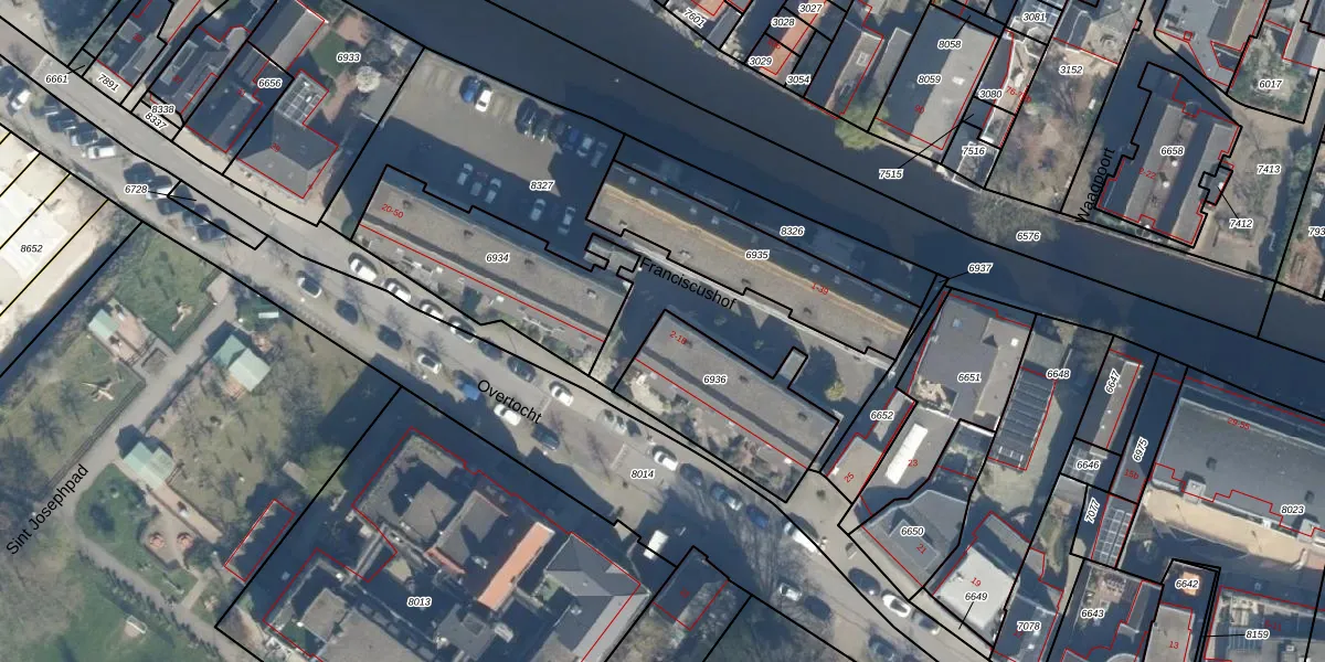 Het perceel waarop Franciscushof 18 staat heeft een oppervlakte van 472 m². Dit is een groot perceel. De perceeloppervlakte wordt geregistreerd door het Kadaster. Gedetailleerde informatie over de maten van dit perceel kunt u vinden in het rapport Kadastrale kaart met maatvoering van Franciscushof 18.
