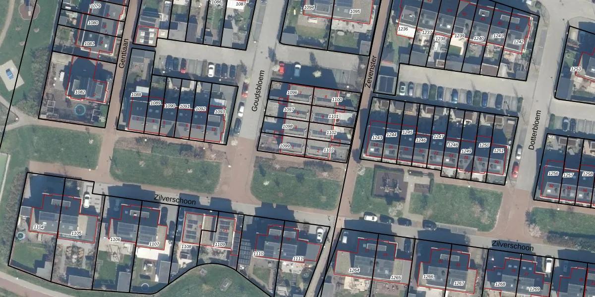 Het perceel waarop Goudsbloem 1 staat heeft een oppervlakte van 100 m². Dit is een middelgroot perceel. De perceeloppervlakte wordt geregistreerd door het Kadaster. Gedetailleerde informatie over de maten van dit perceel kunt u vinden in het rapport Kadastrale kaart met maatvoering van Goudsbloem 1.