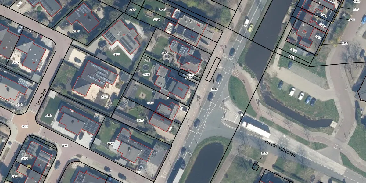 Gebruik de zoekbalk of klik op een perceel voor informatie over de adressen binnen dit perceel.