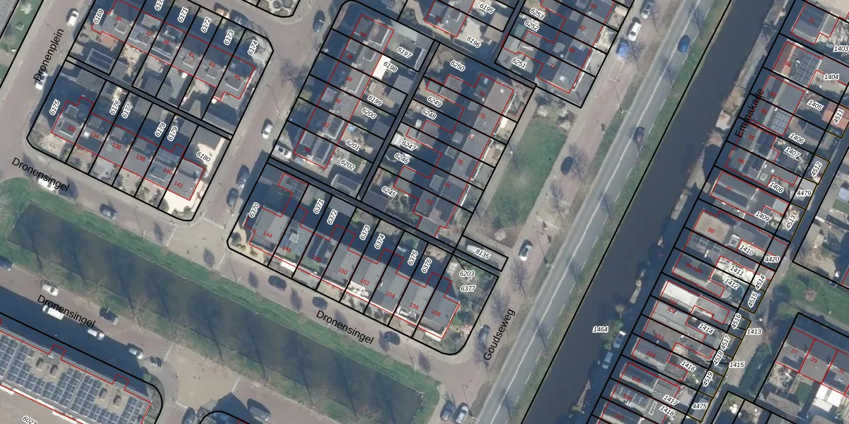 Gebruik de zoekbalk of klik op een perceel voor informatie over de adressen binnen dit perceel.