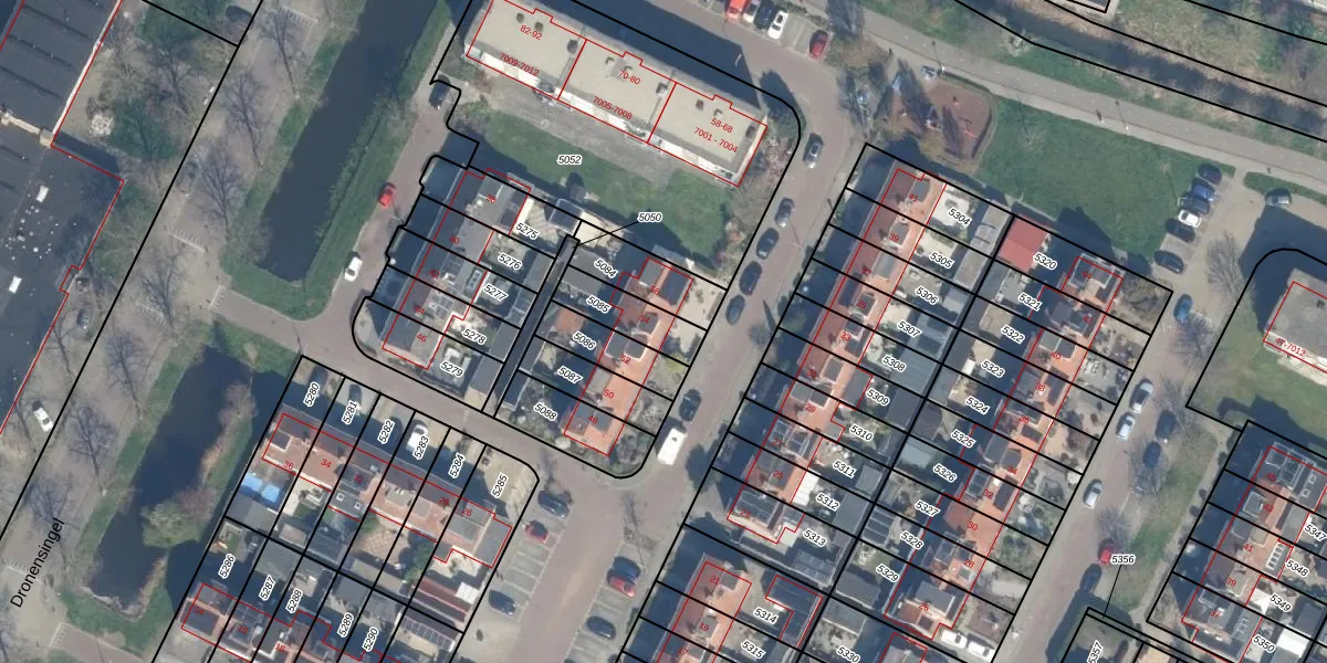 Gebruik de zoekbalk of klik op een perceel voor informatie over de adressen binnen dit perceel.