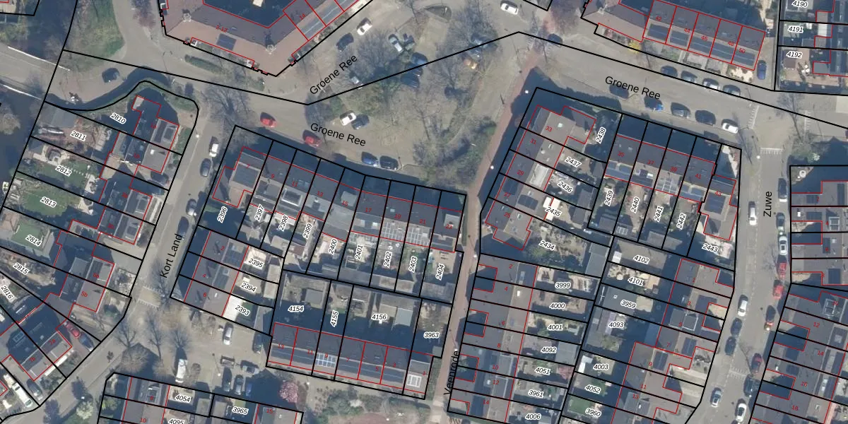 Gebruik de zoekbalk of klik op een perceel voor informatie over de adressen binnen dit perceel.