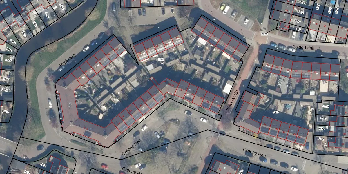Het perceel waarop Groene Ree 30 staat heeft een oppervlakte van 4870 m². Dit is een zeer groot perceel. De perceeloppervlakte wordt geregistreerd door het Kadaster. Gedetailleerde informatie over de maten van dit perceel kunt u vinden in het rapport Kadastrale kaart met maatvoering van Groene Ree 30.