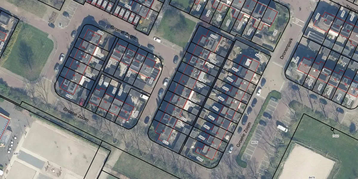 Groene Zoom 77 is gelegen op kadastraal perceel BDG00C6108. Deze kadastrale aanduiding is uniek en wordt gebruikt door het Kadaster om eigendomsrechten en andere zakelijke rechten vast te leggen. Het perceel maakt onderdeel uit van de kadastrale gemeente Bodegraven.