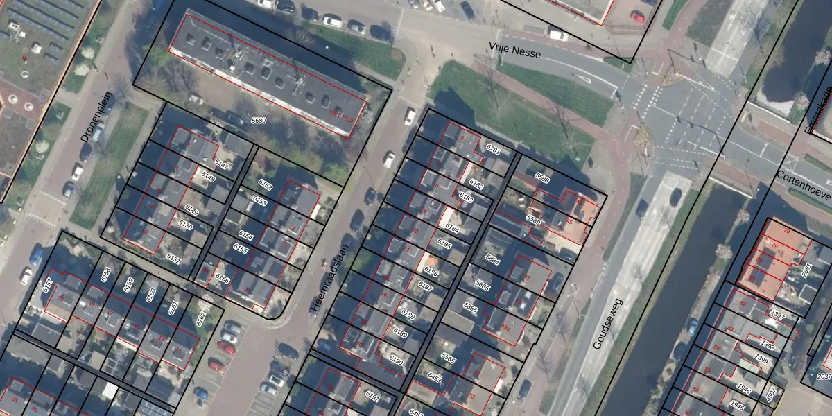 Gebruik de zoekbalk of klik op een perceel voor informatie over de adressen binnen dit perceel.