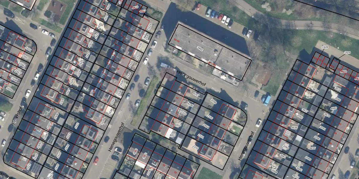 Het perceel waarop Henegouwerhof 45 staat heeft een oppervlakte van 173 m². Dit is een middelgroot perceel. De perceeloppervlakte wordt geregistreerd door het Kadaster. Gedetailleerde informatie over de maten van dit perceel kunt u vinden in het rapport Kadastrale kaart met maatvoering van Henegouwerhof 45.