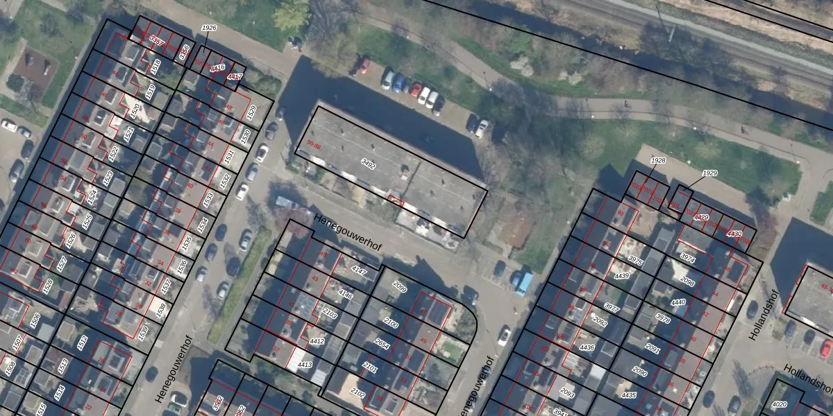 Het perceel waarop Henegouwerhof 56 staat heeft een oppervlakte van 581 m². Dit is een groot perceel. De perceeloppervlakte wordt geregistreerd door het Kadaster. Gedetailleerde informatie over de maten van dit perceel kunt u vinden in het rapport Kadastrale kaart met maatvoering van Henegouwerhof 56.