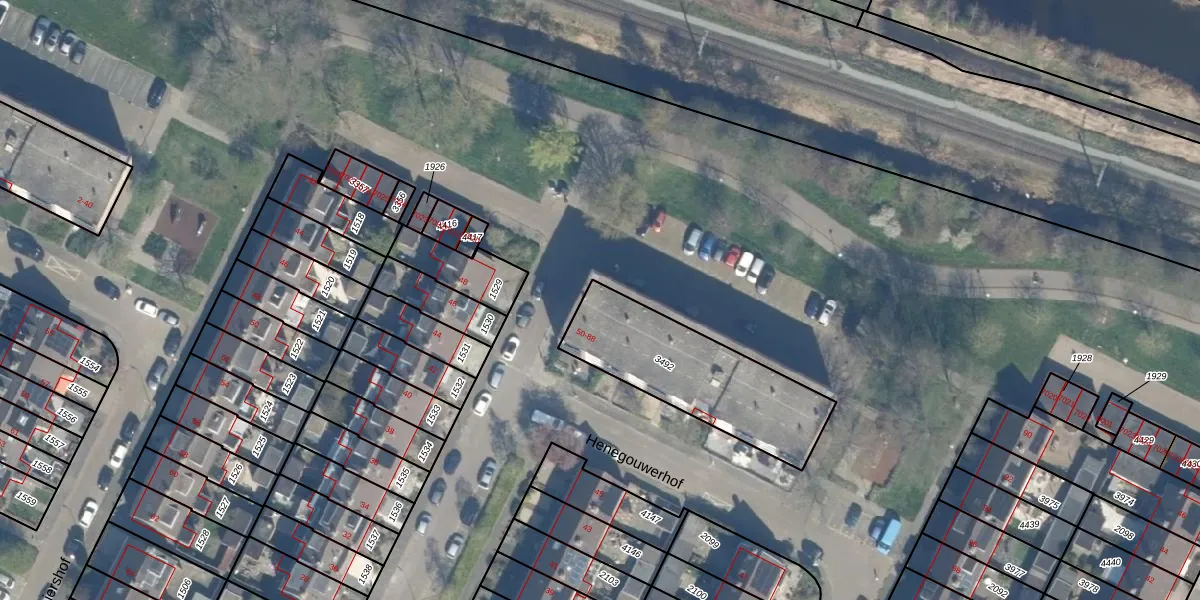 Het perceel waarop Henegouwerhof 80 staat heeft een oppervlakte van 581 m². Dit is een groot perceel. De perceeloppervlakte wordt geregistreerd door het Kadaster. Gedetailleerde informatie over de maten van dit perceel kunt u vinden in het rapport Kadastrale kaart met maatvoering van Henegouwerhof 80.