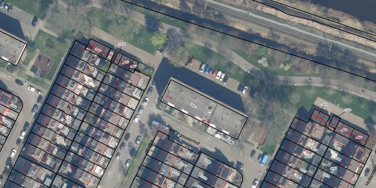 Het perceel waarop Henegouwerhof 82 staat heeft een oppervlakte van 581 m². Dit is een groot perceel. De perceeloppervlakte wordt geregistreerd door het Kadaster. Gedetailleerde informatie over de maten van dit perceel kunt u vinden in het rapport Kadastrale kaart met maatvoering van Henegouwerhof 82.