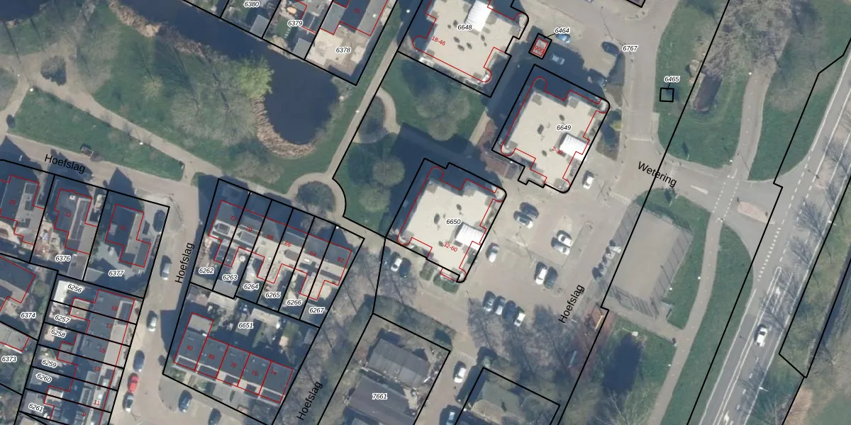 Het perceel waarop Hoefslag 50 staat heeft een oppervlakte van 470 m². Dit is een groot perceel. De perceeloppervlakte wordt geregistreerd door het Kadaster. Gedetailleerde informatie over de maten van dit perceel kunt u vinden in het rapport Kadastrale kaart met maatvoering van Hoefslag 50.