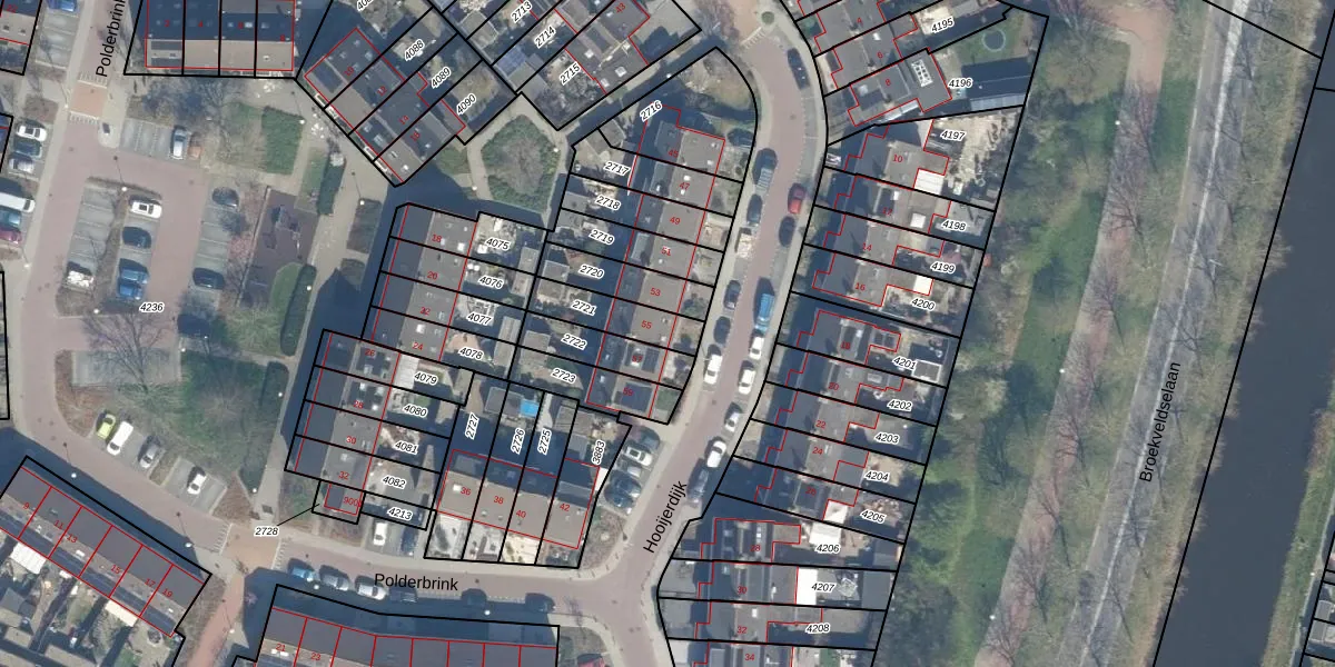 Hooijerdijk 55 is gelegen op kadastraal perceel BDG00F2721. Deze kadastrale aanduiding is uniek en wordt gebruikt door het Kadaster om eigendomsrechten en andere zakelijke rechten vast te leggen. Het perceel maakt onderdeel uit van de kadastrale gemeente Bodegraven.
