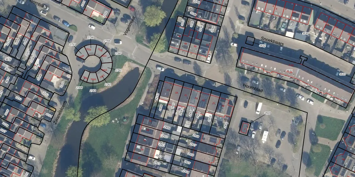 Het perceel waarop Hoornblad 19 staat heeft een oppervlakte van 133 m². Dit is een middelgroot perceel. De perceeloppervlakte wordt geregistreerd door het Kadaster. Gedetailleerde informatie over de maten van dit perceel kunt u vinden in het rapport Kadastrale kaart met maatvoering van Hoornblad 19.