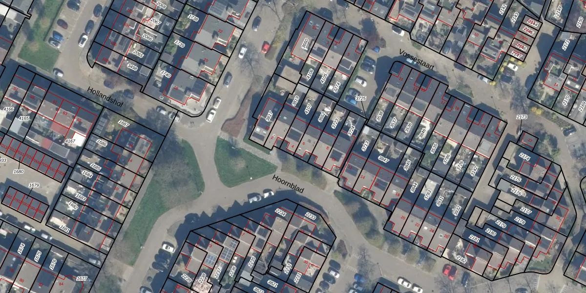 Gebruik de zoekbalk of klik op een perceel voor informatie over de adressen binnen dit perceel.