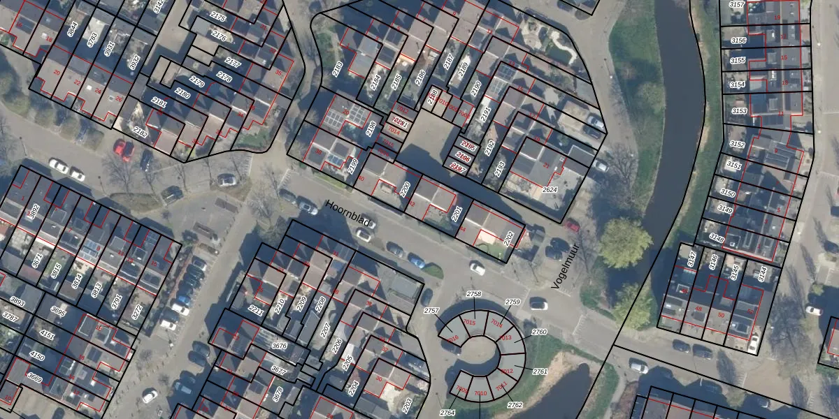 Gebruik de zoekbalk of klik op een perceel voor informatie over de adressen binnen dit perceel.