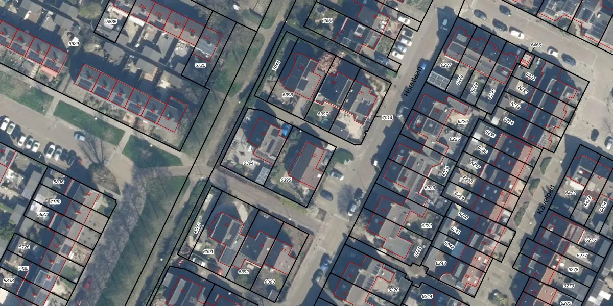 Het perceel waarop Horstlaan 23 staat heeft een oppervlakte van 345 m². Dit is een groot perceel. De perceeloppervlakte wordt geregistreerd door het Kadaster. Gedetailleerde informatie over de maten van dit perceel kunt u vinden in het rapport Kadastrale kaart met maatvoering van Horstlaan 23.