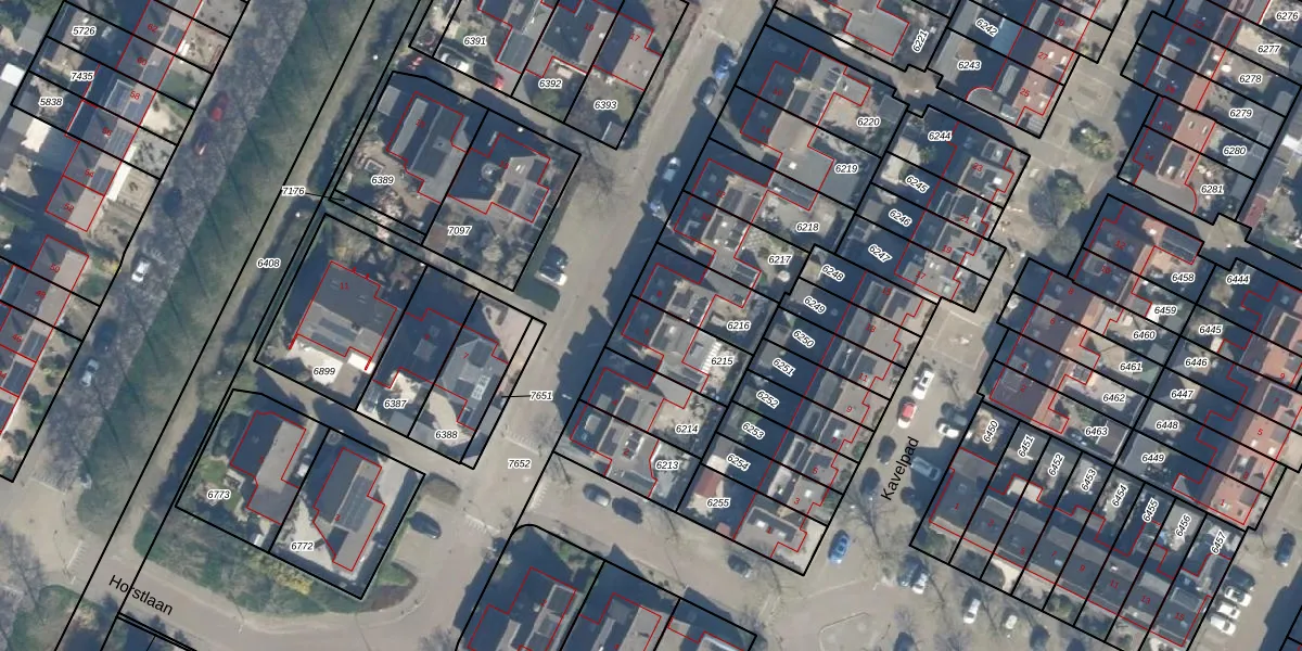 Horstlaan 6 is gelegen op kadastraal perceel BDG00B6215. Deze kadastrale aanduiding is uniek en wordt gebruikt door het Kadaster om eigendomsrechten en andere zakelijke rechten vast te leggen. Het perceel maakt onderdeel uit van de kadastrale gemeente Bodegraven.