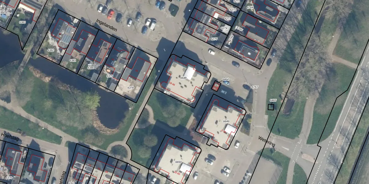 Het perceel waarop Ingelanden 38 staat heeft een oppervlakte van 535 m². Dit is een groot perceel. De perceeloppervlakte wordt geregistreerd door het Kadaster. Gedetailleerde informatie over de maten van dit perceel kunt u vinden in het rapport Kadastrale kaart met maatvoering van Ingelanden 38.