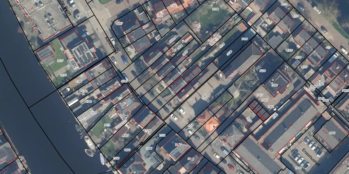Kerkstraat 107 is gelegen op kadastraal perceel BDG00B3739. Deze kadastrale aanduiding is uniek en wordt gebruikt door het Kadaster om eigendomsrechten en andere zakelijke rechten vast te leggen. Het perceel maakt onderdeel uit van de kadastrale gemeente Bodegraven.
