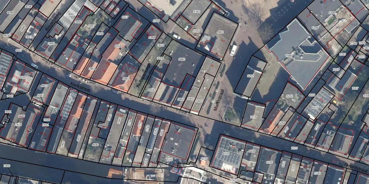 Gebruik de zoekbalk of klik op een perceel voor informatie over de adressen binnen dit perceel.