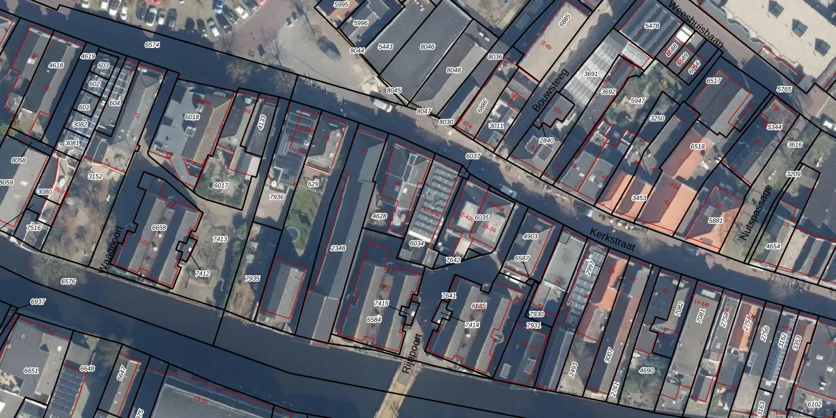 Kerkstraat 44 is gelegen op kadastraal perceel BDG00B6034. Deze kadastrale aanduiding is uniek en wordt gebruikt door het Kadaster om eigendomsrechten en andere zakelijke rechten vast te leggen. Het perceel maakt onderdeel uit van de kadastrale gemeente Bodegraven.