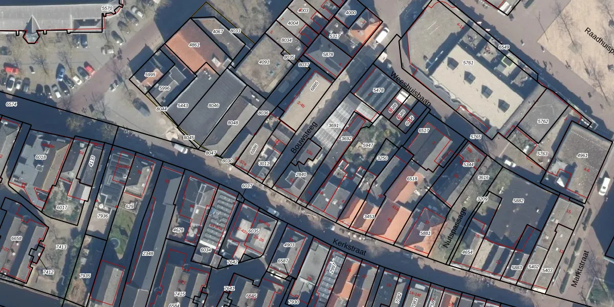 Kerkstraat 53-a is gelegen op kadastraal perceel BDG00B2840. Deze kadastrale aanduiding is uniek en wordt gebruikt door het Kadaster om eigendomsrechten en andere zakelijke rechten vast te leggen. Het perceel maakt onderdeel uit van de kadastrale gemeente Bodegraven.