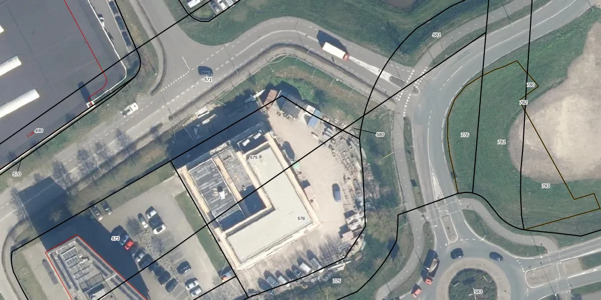 Het adres is gelegen op perceel 575 in de sectie G en de kadastrale gemeente Bodegraven. De kadastrale aanduiding is aldus BDG00-G-575. De gemiddelde perceelgrootte in Bodegraven is 3221,51 m². Dit perceel is kleiner: de perceeloppervlakte bedraagt 1090 m². Het kleinste perceel in de kadastrale gemeente is 0 m² groot. De grootste perceeloppervlakte is 36,3 ha. Op het perceel liggen in totaal 34 adressen. In de Basisregistratie Kadaster (BRK) werden de grenzen van het perceel geregistreerd op 15-01-2013.