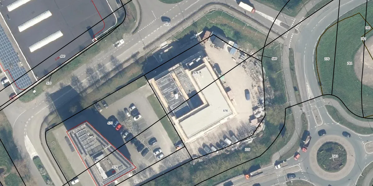 Het adres is gelegen op perceel 575 in de sectie G en de kadastrale gemeente Bodegraven. De kadastrale aanduiding is aldus BDG00-G-575. De gemiddelde perceelgrootte in Bodegraven is 3222,05 m². Dit perceel is kleiner: de perceeloppervlakte bedraagt 1090 m². Het kleinste perceel in de kadastrale gemeente is 0 m² groot. De grootste perceeloppervlakte is 36,3 ha. Er zijn 34 adressen aanwezig op het perceel. De huidige grenzen van het perceel zijn digitaal in de Basisregistratie Kadaster (BRK) geregistreerd op 15-01-2013.