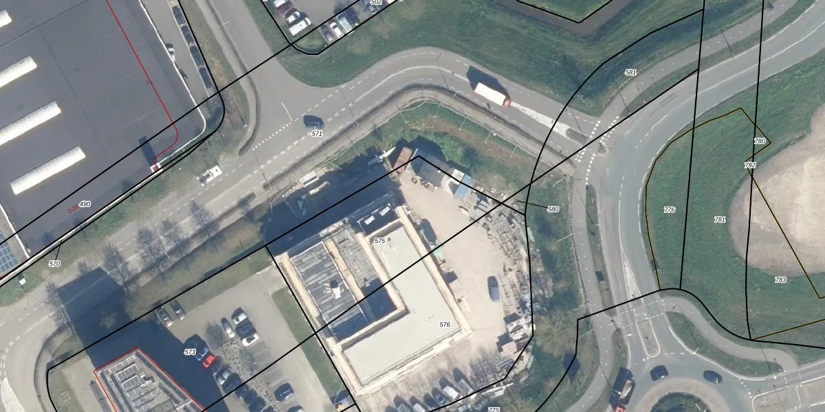 Het adres is gelegen op perceel 575 in de sectie G en de kadastrale gemeente Bodegraven. De kadastrale aanduiding is aldus BDG00-G-575. De gemiddelde perceelgrootte in Bodegraven is 3222,05 m². Dit perceel is kleiner: de perceeloppervlakte bedraagt 1090 m². Het kleinste perceel in de kadastrale gemeente is 0 m² groot. De grootste perceeloppervlakte is 36,3 ha. Op het perceel liggen in totaal 34 adressen. De huidige grenzen van het perceel zijn digitaal in de Basisregistratie Kadaster (BRK) geregistreerd op 15-01-2013.