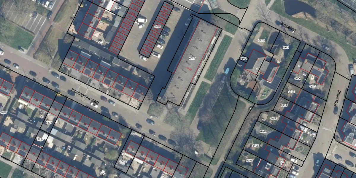Koninginneweg 27 is gelegen op kadastraal perceel BDG00B6627. Deze kadastrale aanduiding is uniek en wordt gebruikt door het Kadaster om eigendomsrechten en andere zakelijke rechten vast te leggen. Het perceel maakt onderdeel uit van de kadastrale gemeente Bodegraven.