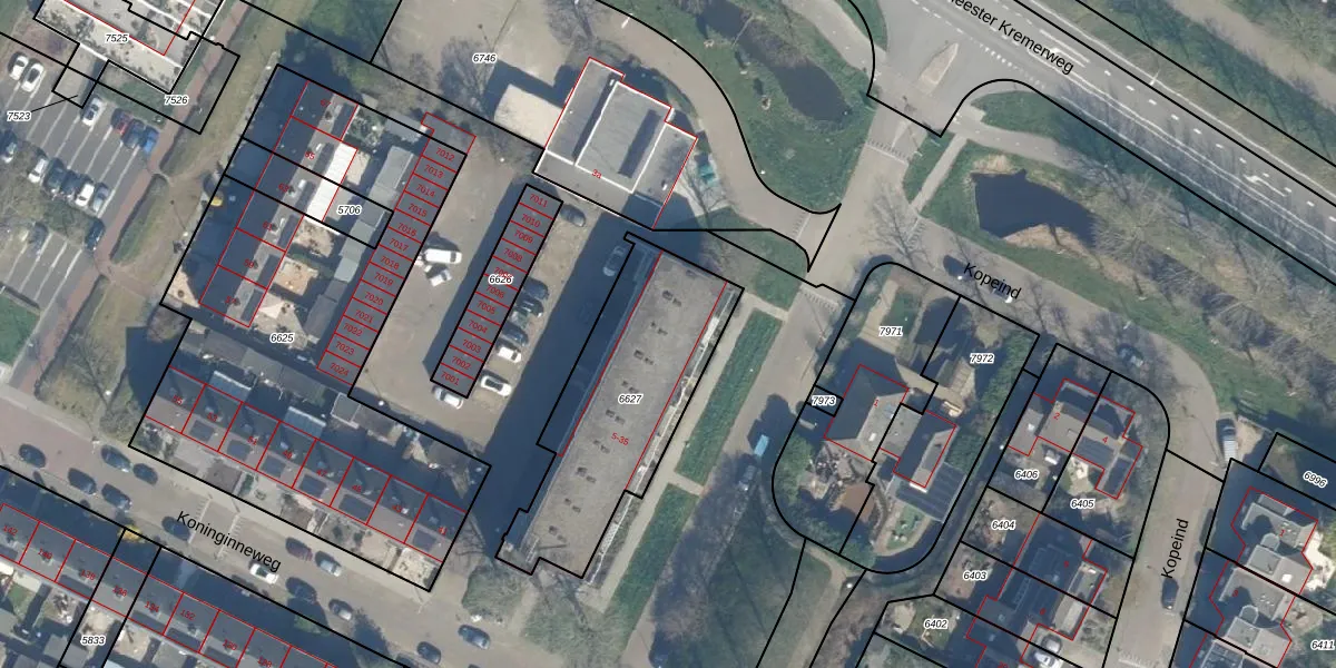 Koninginneweg 5-e is gelegen op kadastraal perceel BDG00B6627. Deze kadastrale aanduiding is uniek en wordt gebruikt door het Kadaster om eigendomsrechten en andere zakelijke rechten vast te leggen. Het perceel maakt onderdeel uit van de kadastrale gemeente Bodegraven.