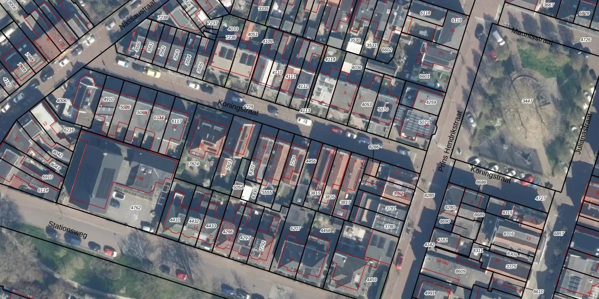 Het perceel waarop Koningstraat 12 staat heeft een oppervlakte van 148 m². Dit is een middelgroot perceel. De perceeloppervlakte wordt geregistreerd door het Kadaster. Gedetailleerde informatie over de maten van dit perceel kunt u vinden in het rapport Kadastrale kaart met maatvoering van Koningstraat 12.