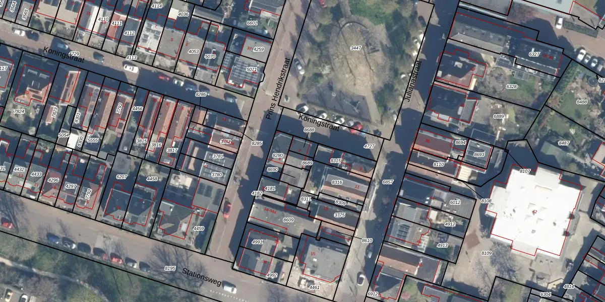 Het perceel waarop Koningstraat 2-a staat heeft een oppervlakte van 45 m². Dit is een klein perceel. De perceeloppervlakte wordt geregistreerd door het Kadaster. Gedetailleerde informatie over de maten van dit perceel kunt u vinden in het rapport Kadastrale kaart met maatvoering van Koningstraat 2-a.