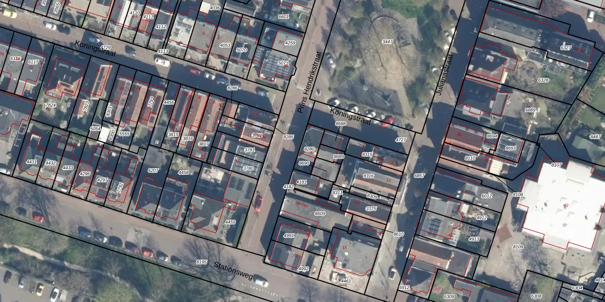 Het perceel waarop Koningstraat 4 staat heeft een oppervlakte van 94 m². Dit is een klein perceel. De perceeloppervlakte wordt geregistreerd door het Kadaster. Gedetailleerde informatie over de maten van dit perceel kunt u vinden in het rapport Kadastrale kaart met maatvoering van Koningstraat 4.