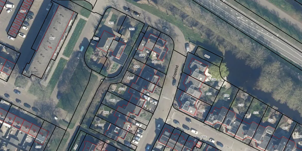 Kopeind 6 is gelegen op kadastraal perceel BDG00B6404. Deze kadastrale aanduiding is uniek en wordt gebruikt door het Kadaster om eigendomsrechten en andere zakelijke rechten vast te leggen. Het perceel maakt onderdeel uit van de kadastrale gemeente Bodegraven.