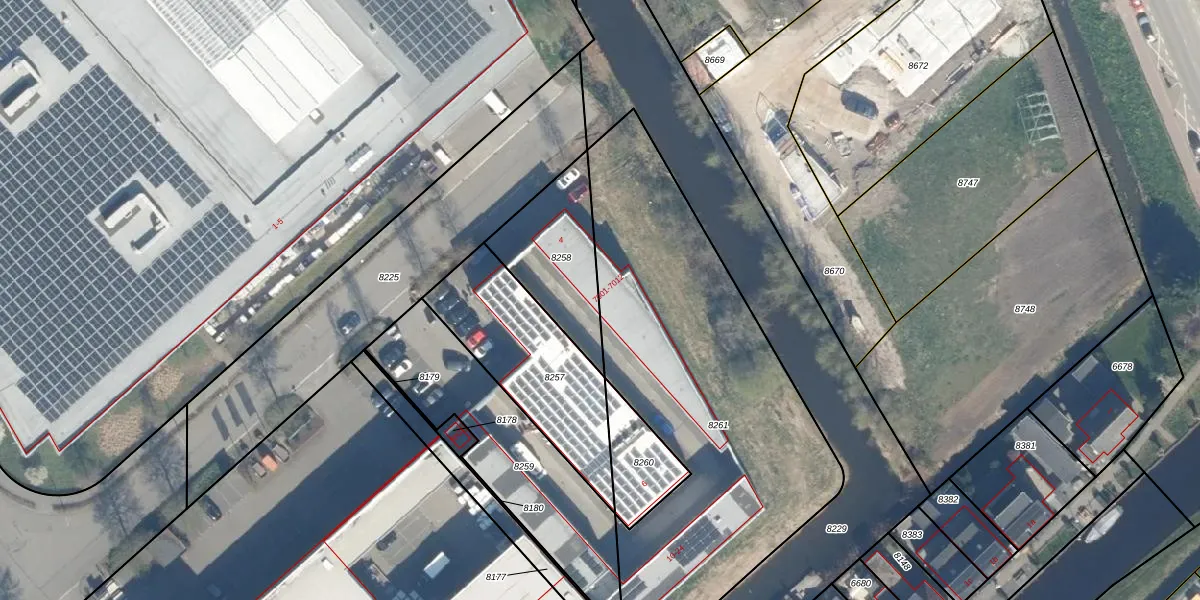 Het adres is gelegen op perceel 8261 in de sectie C en de kadastrale gemeente Bodegraven. De kadastrale aanduiding is aldus BDG00-C-8261. De gemiddelde perceelgrootte in Bodegraven is 3221,51 m². Dit perceel is kleiner: de perceeloppervlakte bedraagt 1936 m². De grootste perceeloppervlakte in de kadastrale gemeente is 36,3 ha. De kleinste oppervlakte bedraagt 0 m². Op het perceel liggen in totaal 13 adressen. De huidige grenzen van het perceel zijn digitaal in de Basisregistratie Kadaster (BRK) geregistreerd op 26-06-2018.